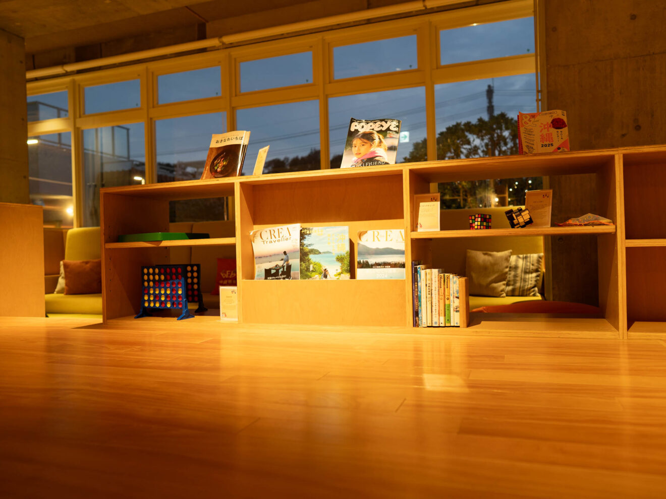 トランプやカードゲーム、オセロ、人生ゲームなど遊べるグッズが多数用意してあるけぇ、子どもたちも一緒にこの空間で楽しむことができるよ。