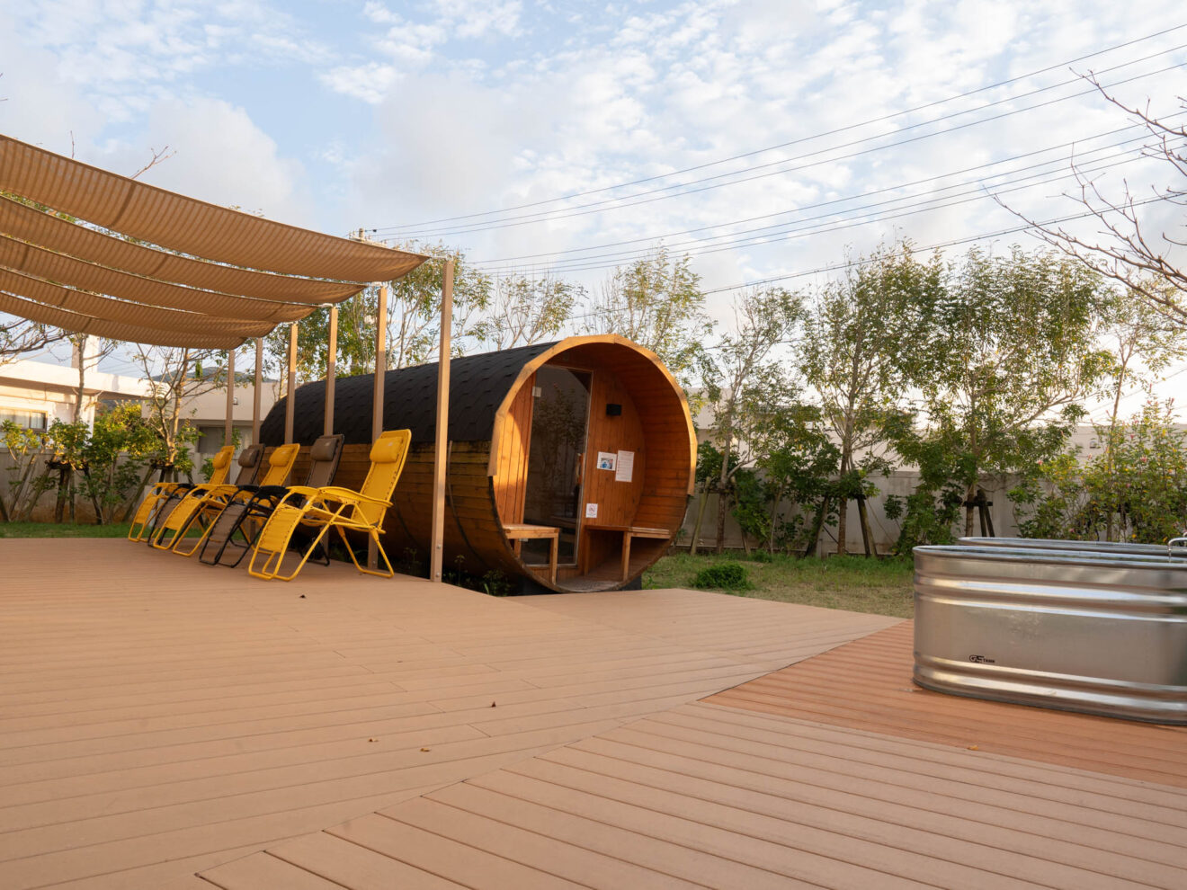 今回は子連れで利用せんかったんじゃけど、1階の屋外にはおしゃれなバレルサウナもありました。
