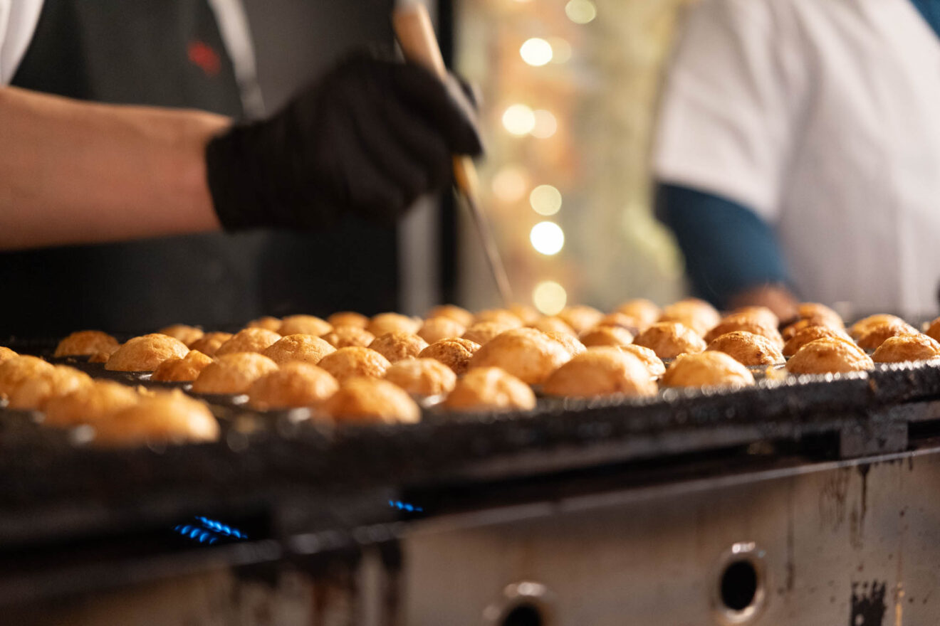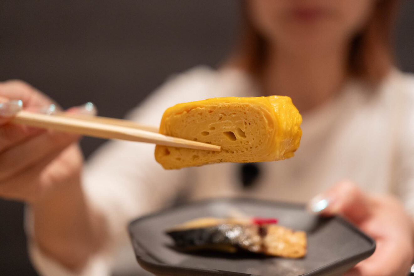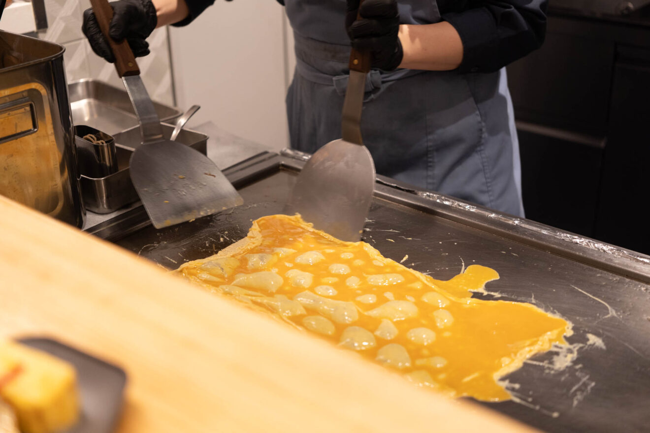 大阪のだし文化を味わえる「だし巻き玉子」は、目の前で一つずつ丁寧に作ってくれます。