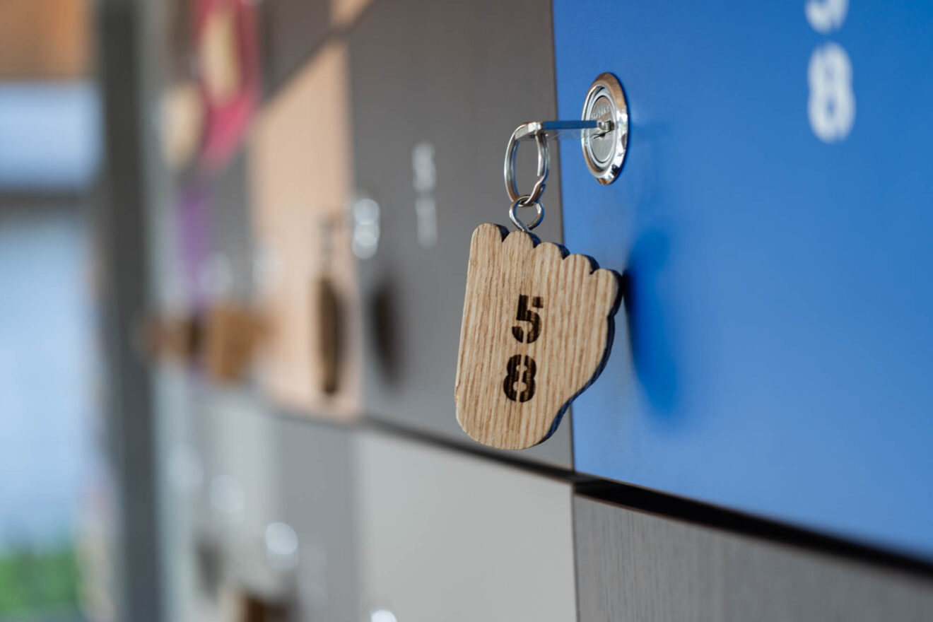 靴箱の鍵に付いているチャームが、なんとビリケンさんの足形に!