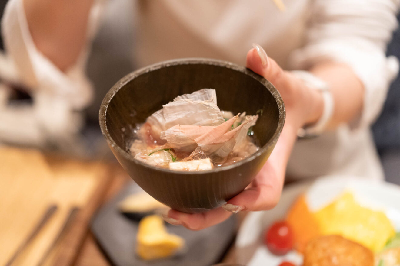 かつお、いりこ、うるめ、さば、昆布からだしをとっているので、おだしの香りがすごい!!