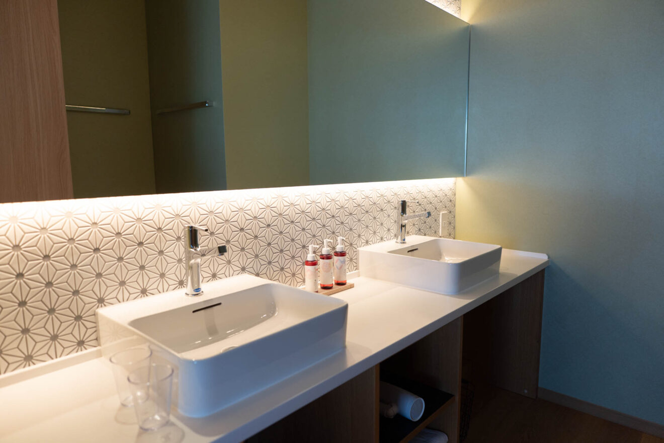 大阪には古くから根付いたお風呂屋文化があって、それを存分に体感できるよう、湯屋はあえてホテルの建物を出た敷地内に独立して建てられているんだそう。