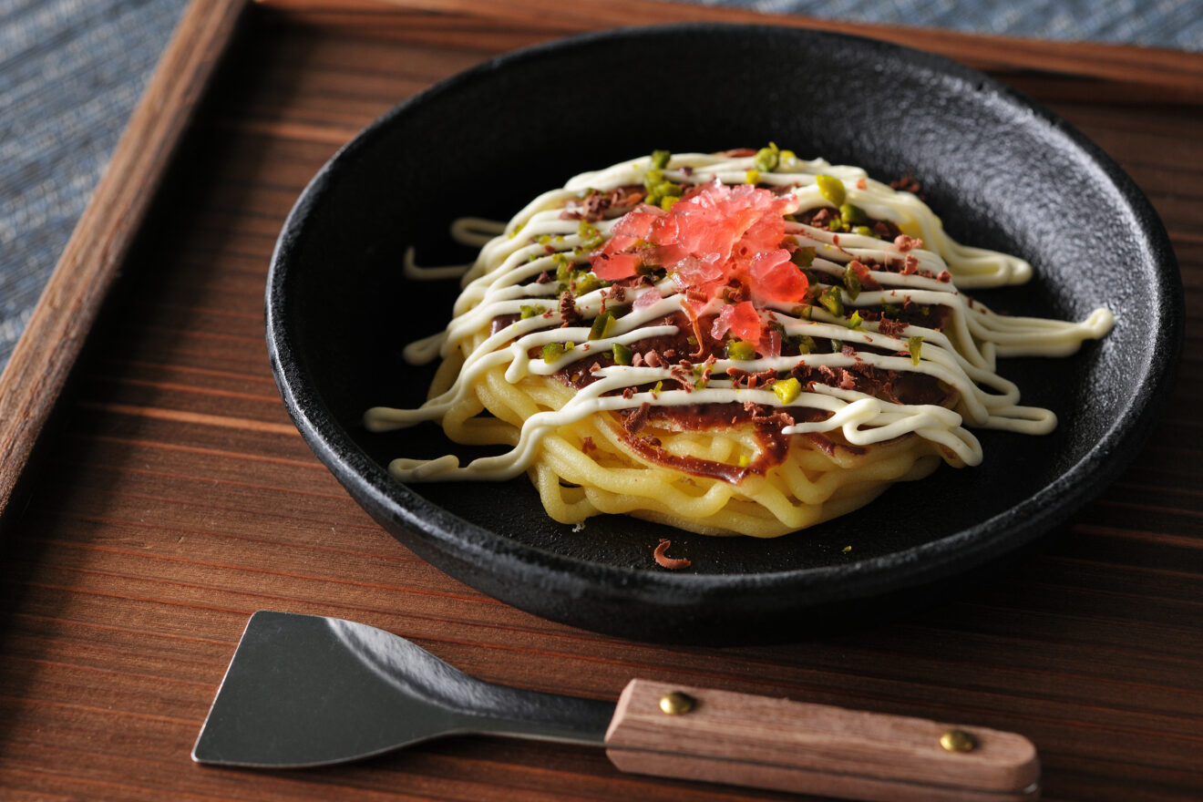 デザートに見える先付け「タルトシトロン」や、村上水軍ゆかりの「水軍鍋」、そして締めくくりには、なんとお好み焼きに見立てたモンブランが登場します!