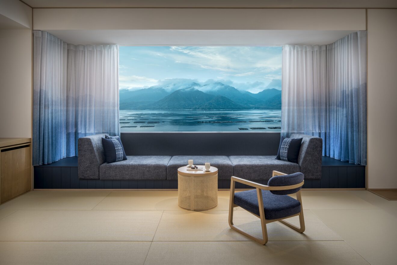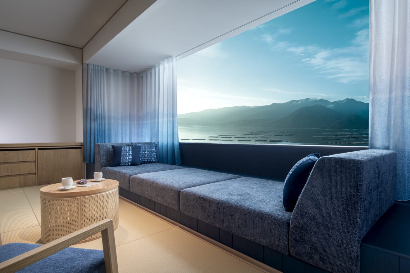 館内は全館畳敷きで、素足でリラックスしながら、まるで海と一体になったような「凪(なぎ)」のひとときを過ごせる宿になっています。