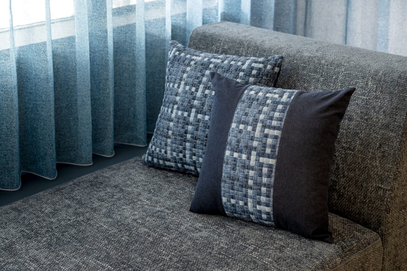 幻想的な海霧をイメージしたカーテンが窓辺を彩り、外の景色と室内がシームレスにつながります。
